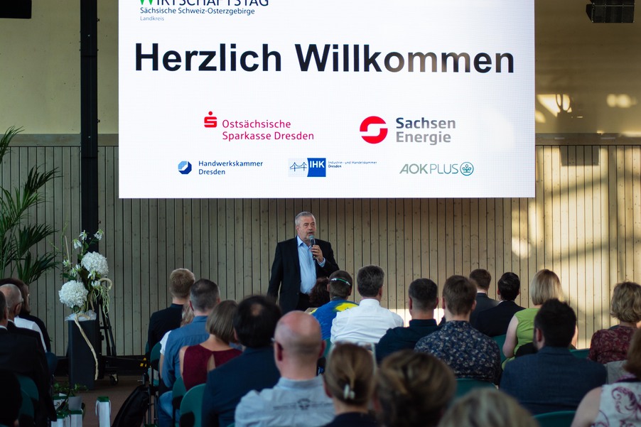 Am 18.05.2022 fand der 16. Wirtschaftstag des Landkreises Sächsische Schweiz-Osterzgebirge statt. Dazu hatte Landrat Michael Geisler die Unternehmerinnen und Unternehmer in die Turnhalle des Beruflichen Schulzentrums „Friedrich Siemens“ Pirna eingeladen.