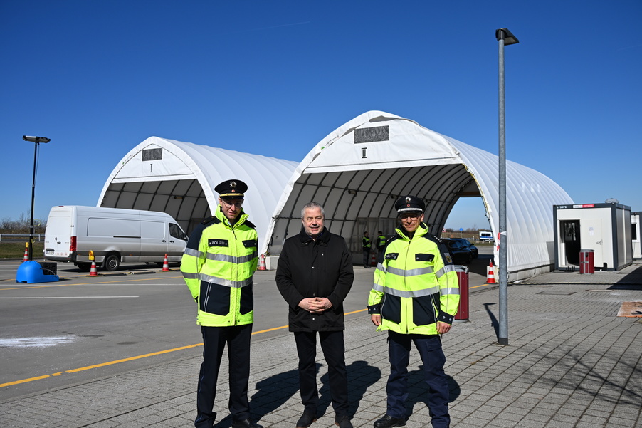 Der stellvertretende Inspektionsleiter Sasiadek führte Landrat Michael Geisler durch das beidseitig befahrbare Kontrollzelt und erläuterte die Arbeit an der Grenze. "Die Beamten in Breitenau sorgen bei Wind und Wetter täglich für unsere Sicherheit", betonte der Landrat anerkennend. "Die Technik vor Ort ist beeindruckend, ebenso wie die logistische und organisatorische Leistung der Bundespolizei." Unterstützungskräfte der Bundespolizeiabteilung Blumberg verstärken aktuell die vor Ort stationierten, wöchentlich wechselnden Kräfte der hiesigen Polizei.