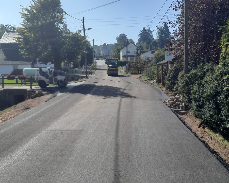 Im Auftrag des Landkreises Sächsische Schweiz-Osterzgebirge erfolgte in der Ortslage Johnsbach (Oberdorf) eine Fahrbahninstandsetzung in zwei Teilabschnitten auf einer Gesamtlänge von ca. 770 Metern. Die vorhandene Asphaltbefestigung wurde ausgebaut, der vorhandene Unterbau profiliert sowie eine neue Asphalttrag- und Deckschicht hergestellt. Weiterhin wurden die Bankette neu aufgebaut. Im 2.Teilabschnitt erfolgte zudem der Ersatzneubau eines Durchlasses. Die Arbeiten starteten am 12. September und dauern bis zum 13. Oktober an, wobei die Verkehrsfreigabe bereits am Freitag, den 6. Oktober erfolgte. Bis zum Ende der Bauzeit erfolgen Restleistungen in den Seitenbereichen mit maximal halbseitiger Verkehrseinschränkung.