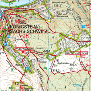 Der Landkreis verfügt über ein interessantes, sehr gut ausgebautes und ausgeschildertes Wanderwegenetz. Zu den beliebtesten Wanderwegen in der Sächsischen Schweiz gehört der Malerweg, "Deutschlands schönstem Wanderweg". Festung Königstein, Pfaffenstein, Barbarine, Felsenbühne Rathen, Bastei und vieles mehr: Praktisch alles, wofür die Region berühmt ist, findet man entweder direkt am oder unweit des Weges.